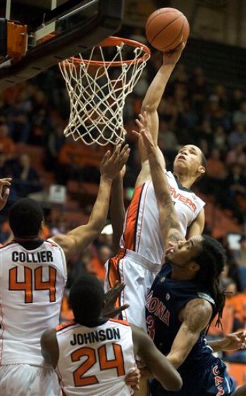 Roberto Nelson had his first scoreless game, but had a pair of key passes that led to baskets, demonstrating that he can contribute without scoring. Angus Brandt's 7 points and 4 rebounds were also crucial in keeping Oregon St. in the thick of a battle that never saw either team open more than a 7 point lead.