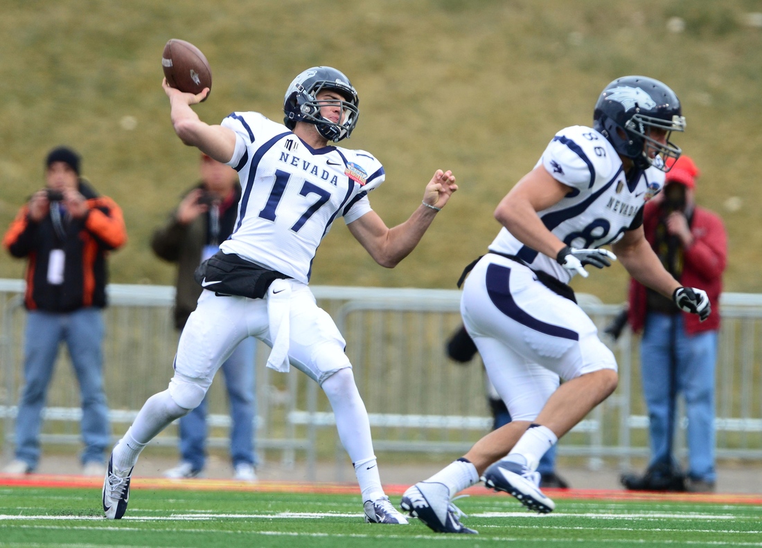 Fajardo, above, completed 22 of 31 passes, for 255 yards and 3 touchdowns, and also ran for 139 yards and a score, as Nevada ran for 403 total yards, and ran off 105 plays.