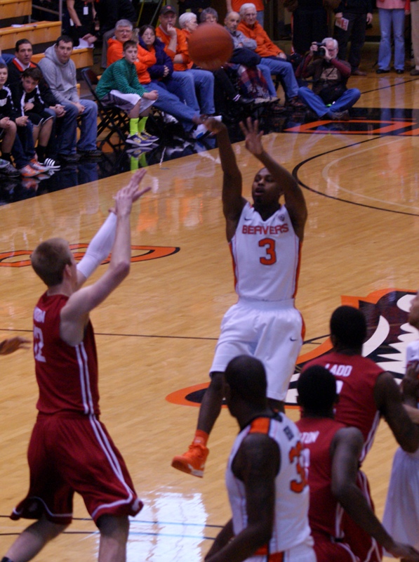 And its debatable whether Oregon St. should have really got to count a transition basket that started with a defensive rebound corralled by a player with both feet not just out of bounds, but well into the middle of the "OREGON STATE" lettering on the floor under the basket.