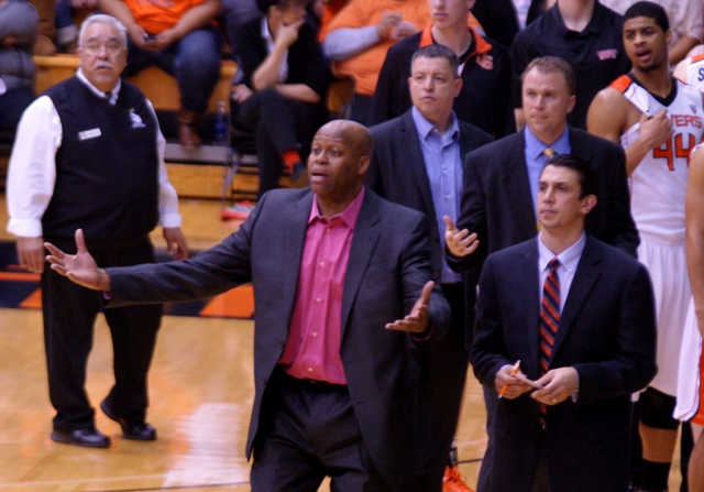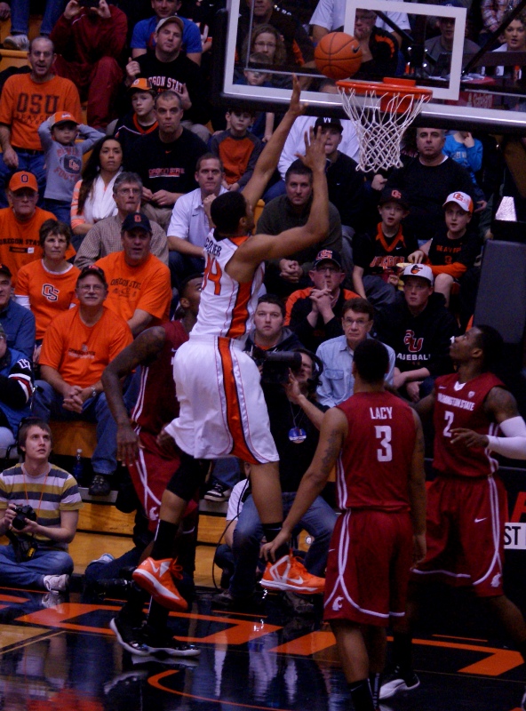 Mike Ladd, above, had 17 of Washington St.'s first 21 points, clearly carrying the Cougars, while the Beavers were thoroughly throttling Washington St.'s leading scorer, holding Brock Motum to just 4 first half points.