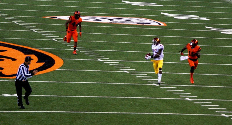 From there the Trojans were stuffed though, first by a botched a snap that Kessler wasn't expecting, and followed by a screen pass which fell short of the first down. It resulted in a field goal, and the Beavers looked like they still had a shot.