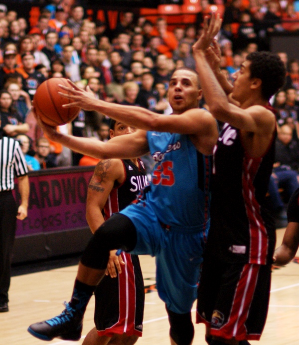 Roberto Nelson, above, focused his attention early on getting others involved, and finished with a game high 7 assists, to go with his 17 points, 13 of which came in the second half. Nelson, who has led Oregon St. in scoring in their first 3 games, had 3 assists before ever putting up a shot.