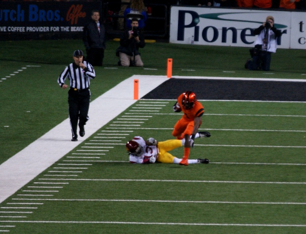 Oregon St. going to a better bowl or not, and being a factor in the Pac-12 and national picture, or this being another mearly another good, but not top tier, season, probably hinges on not seeing both Murphy and Zimmerman chasing the same play from hopelessly too far behind, like on USC's first score: