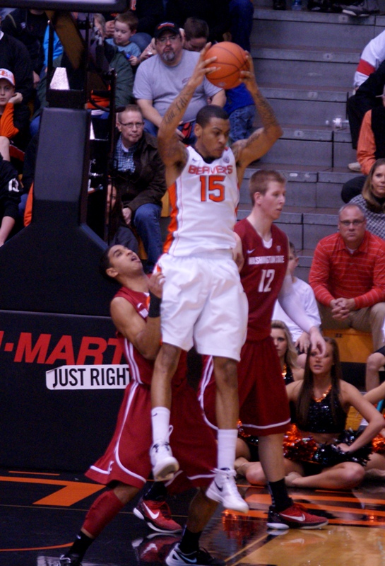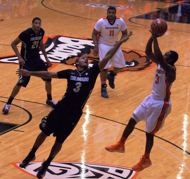 There wasn't enough scoring support for Devon Collier, above, (who had his own slumps at times), Roberto Nelson, and Joe Burton, who became only the second trio on a team in Oregon St. history to all be 1,000 point scorers, joining Steve Johnson, Mark Radford, and Ray Blume.