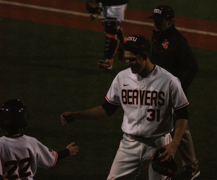 Oregon St. Coach Pat Casey moved Andy Peterson to short and inserted Kavin Keyes at second, and moved Ryan Barnes up to the #2 spot in the batting order.