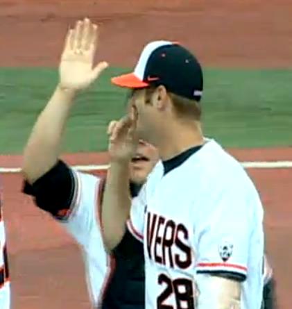 Oregon St. added a run, but only 1 run, in the second inning, after loading the bases with no outs, and running into an unforced out at the plate in the 5th. After scoring Andy Peterson with a double, and advancing to 3rd on Ryan Barnes' fly ball that scored Conforto, Dylan Davis was inexplicably sent home on an infield grounder, and what could have been an inning when the Beavers blew the game open yielded only 2 runs.