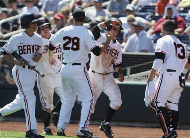 other Beavers after scoring to open Oregon St.'s lead to 5-0.