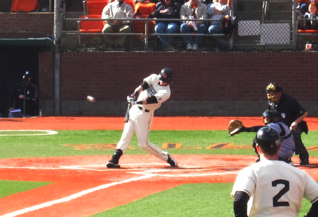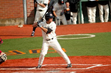 But the biggest bump in the road came following that first loss, a 5-1 setback against San Francisco that ultimately cost much more than just that one game. Senior short stop Tyler Smith, below, who was hit on the left hand by a pitch, and suffered a broken bone, was eventually lost for multiple series, and the Beavers lost 4 of 7 games, including losing an Easter weekend series at San Diego. after Oregon St. had climbed to #2 in the nation, the highest point they reached this season.