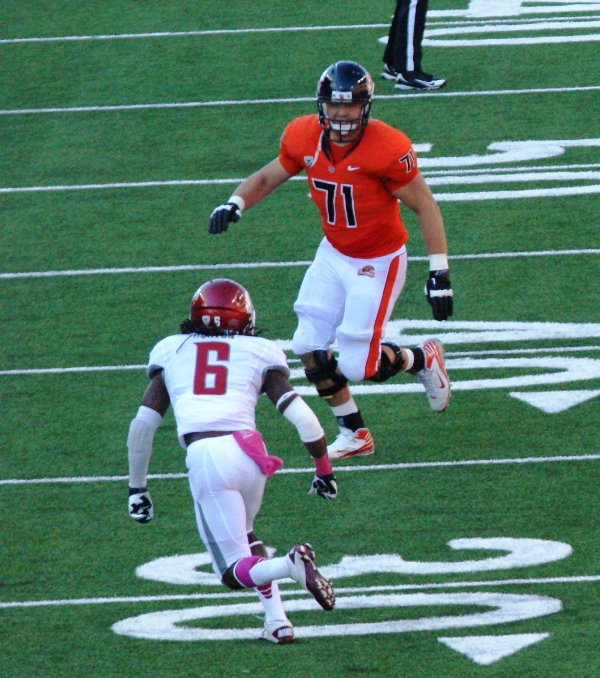 Grant Enger has been the starting right guard for Oregon State for the past 1.5 years, where he took over the starting role in 2011 , after subbing on the left side earlier in that season as well. He is able to move well, as proven by his history of being the back-up for either offensive tackle in the past. Enger is part of this upcoming veteran offensive line that should prove to be one of the best in the Pac-12.