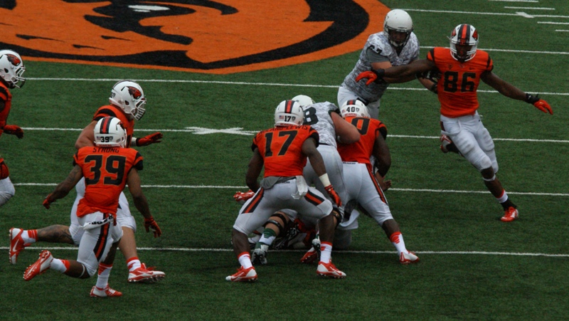 And its important for those that were hoping for more inside rushing success to remember that Portland St. has a 340 lb, space eater in Daniel Fusi that was clogging up a lot of lanes, about as large an impediment as any single object Oregon St. will have to work around all season.