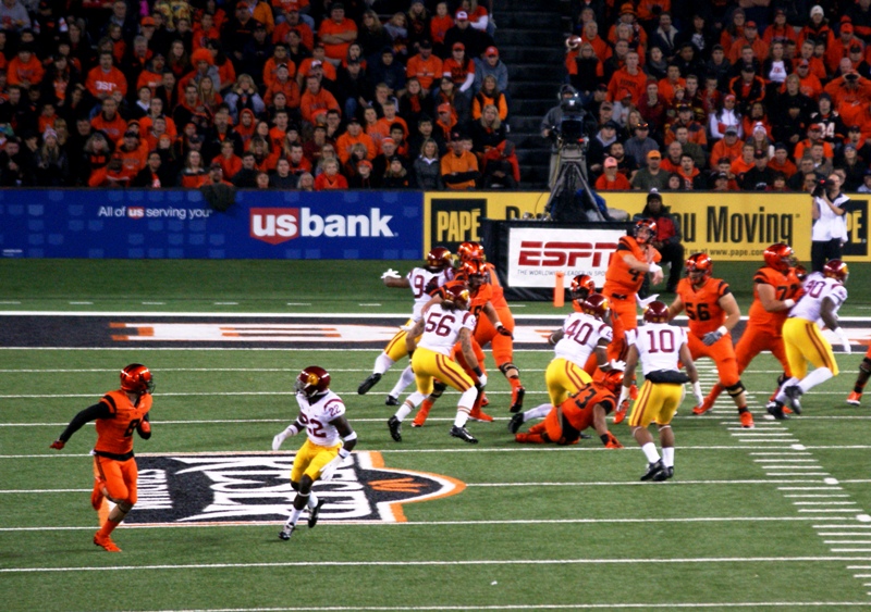Mannion had one of the most prolific seasons any Oregon State quarterback has ever had. He set a new Pac-12 passing yard record with 4,662 yards, and set OSU records in touchdowns (37), passes attempted (603), and passes completed (400). With Brandin Cooks running routes, they were one of the most lethal combos in the country, and the offense ran rampant over the first half of the season.