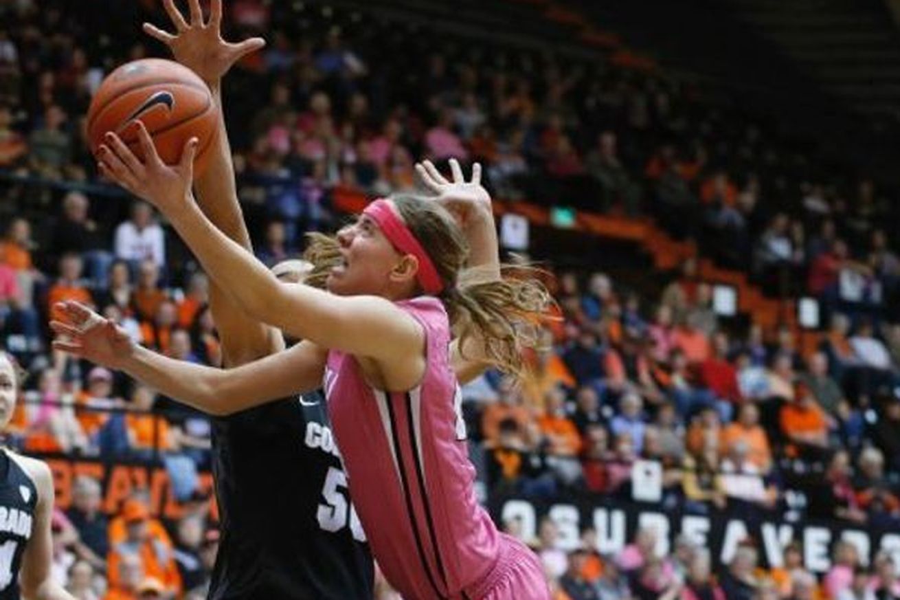 The Friday night annual DAM Cancer pink game match up saw two teams on opposite ends of the conference standings. The Colorado Buffaloes (6-17, 1-11) have continued to struggle this season, but even though they have only one win in Pac-12 play it was against a solid USC team. All of which demonstrated that co-conference leading Oregon State (20-3, 11-1) had to take this game as a serious "take care of business" match up.