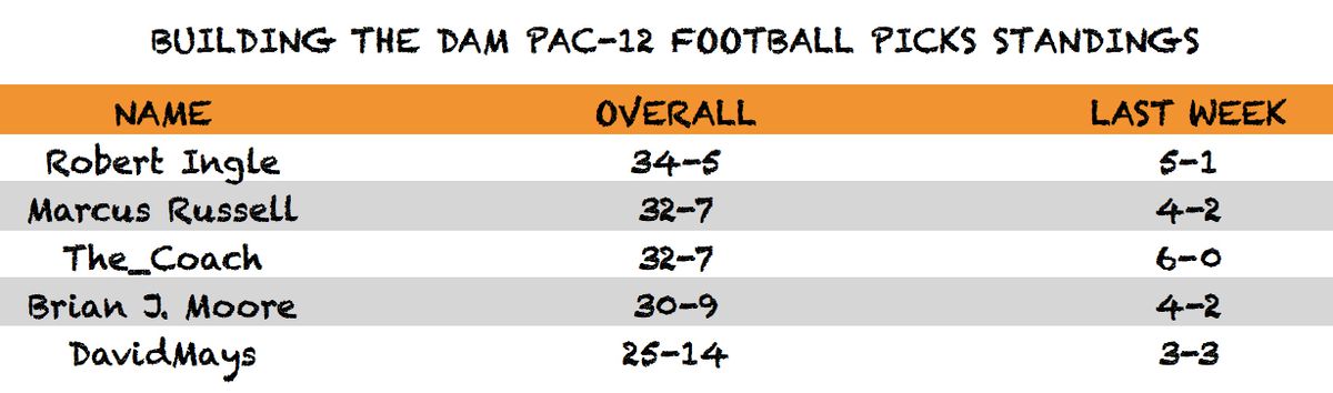 A six-game slate awaits the group of contributors in Week Five, where some razor-thin betting lines are sure to make for some nail-biting and stomach-churning games and maybe some interesting decisions in this week’s edition of Pac-12 Football Picks.