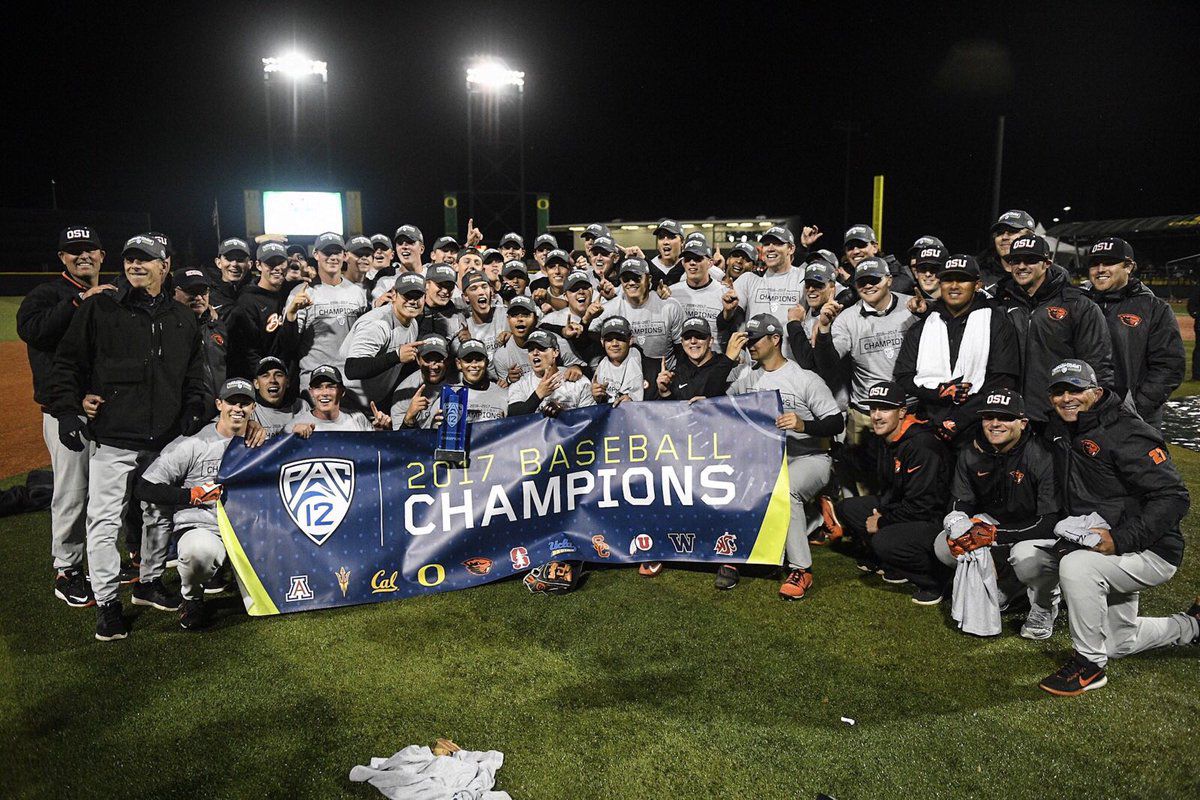 On a cold and rainy night at PK Park in Eugene, Oregon State won the Pac-12 outright with a 5-4 win over Oregon. That win also marked head coach Pat Casey’s 1,000th career victory and the fifth Pac-12 championship under Casey.