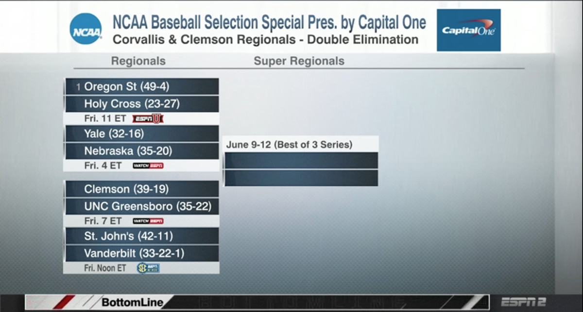Oregon State will begin play Friday at 8pm when they play the regional’s #4 seed Holy Cross. The winner will play the winner of the Nebraska vs Yale matchup. For those unfamiliar with the regional format, it is a double elimination tournament, so the teams could play into Monday if necessary. The winner of the Corvallis regional will play the winner of the Clemson regional featuring Clemson, Vanderbilt, St. Johns, and UNC Greensboro in a 3 game super regional series next weekend. Oregon State would host the super regional if they win this weekend.