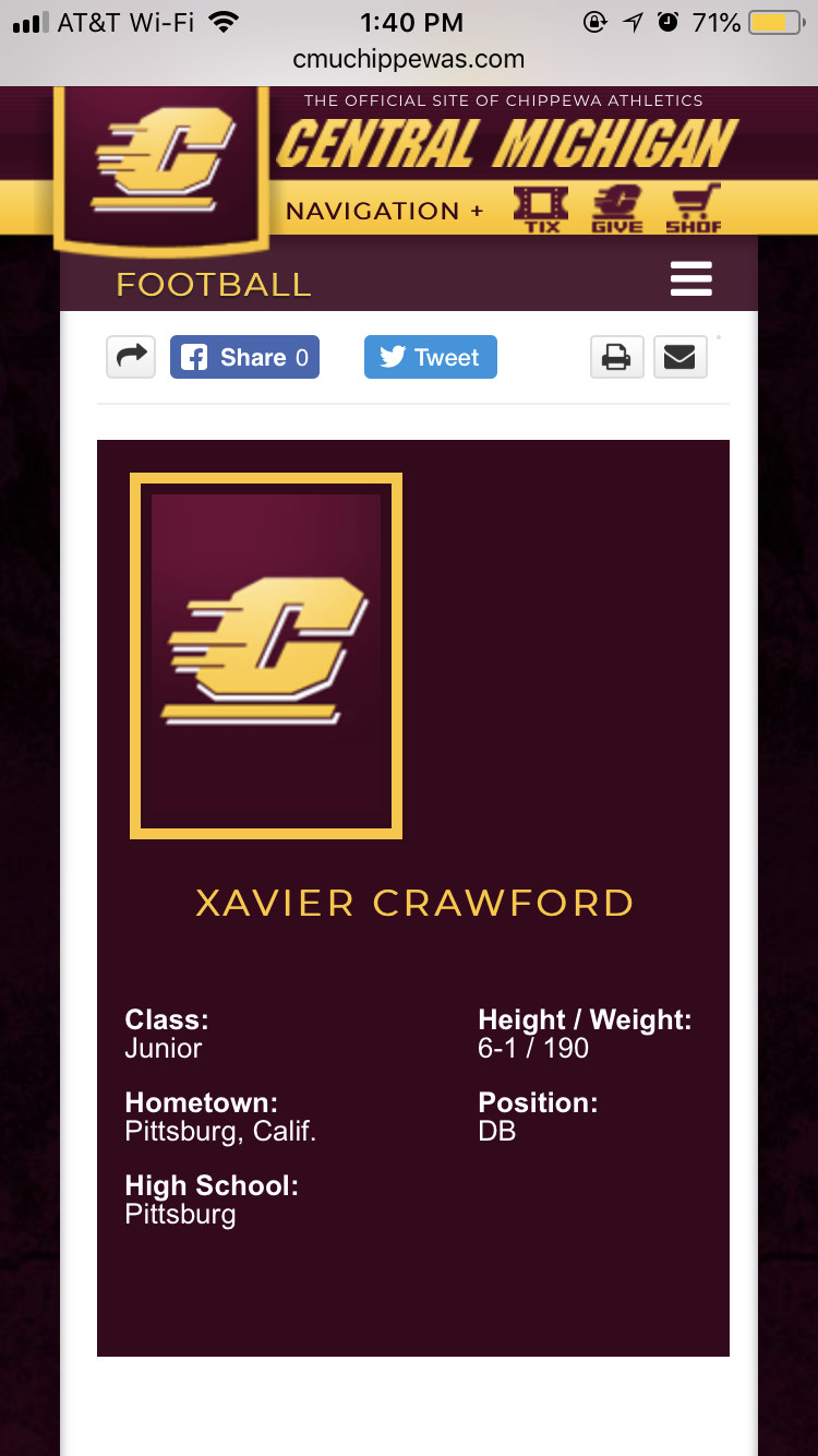 Additionally, the name Xavier Crawford has appeared on Central Michigan’s football roster with the same hometown, high school, and height as the OSU standout.