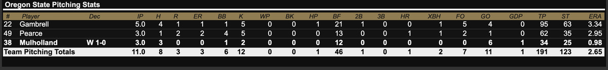 In the top of the eleventh, George Mendazona launched his first career homer right over the center-field wall to put the Beavs ahead 4-3. The defense would hold and the Beavs got on the bus winners.